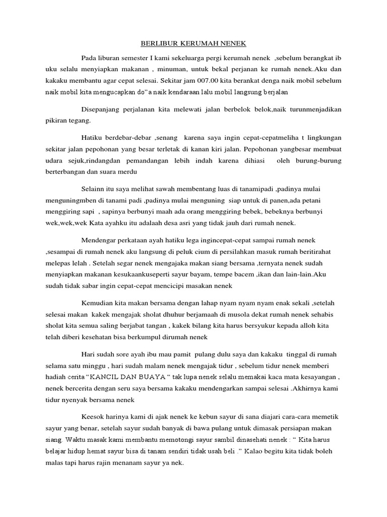 Contoh gambar liburan ke rumah nenek. Cerpen anak cerpen liburan lolos moderasi pada. Berlibur ke rumah nenek cerpen karangan. Data data mengenai contoh cerita liburan ke rumah nenek dalam bahasa inggris.