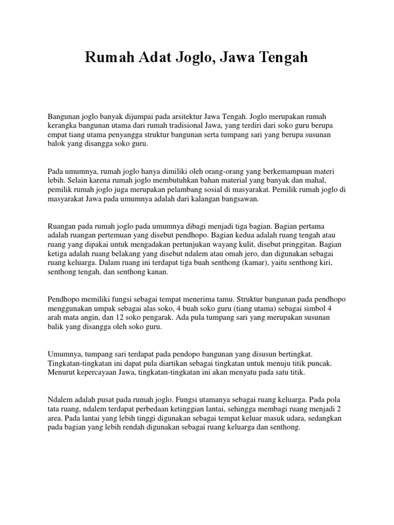 Rumah adat jawa tengah gambar dan penjelasanya. Bagian bagian ini menunjukkan kedekatan orang rumah terhadap orang orang tertentu. Keunikan dari rumah adat joglo ini terletak pada desain atapnya yang tinggi dan disangga menggunakan empat tiang yang disebut dengan soko guru.